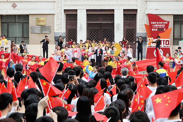 歌曲的余音刚刚结束,“矿大(北京),祝祖国繁荣昌盛!祖国万岁!”现场800余名师生的声音再次响彻校园,回响久久。