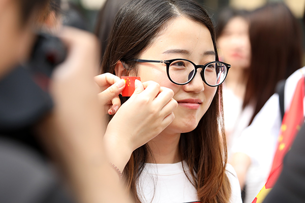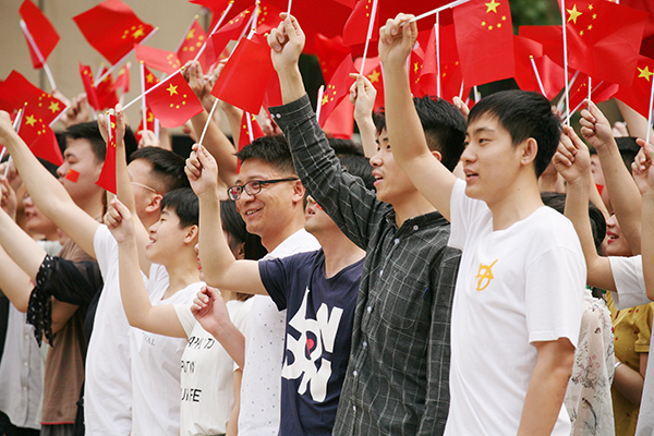 师生们人手一面五星红旗,挥动的是似火热情,欢呼的是蓬勃朝气。