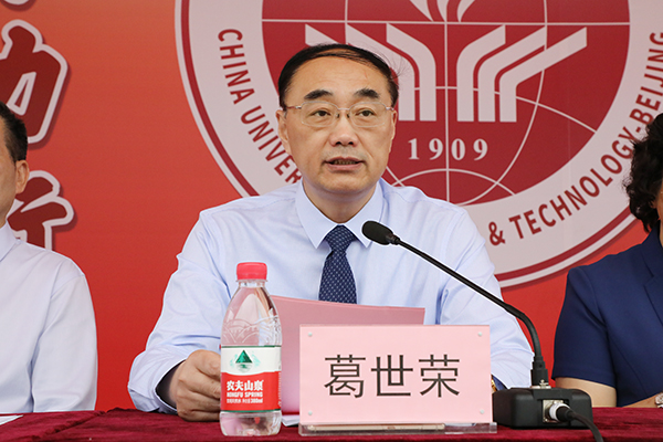 校长葛世荣致开幕词。他表示,学校隆重发布新校训和新校徽,传承了历史底蕴,凝练了学校精神,展现了办学特色。与此同时,学校举办第二十一届田径运动会,用矿大人的激情动力、拼搏精神和顽强意志展现了学校事业发展的信念和决心。他代表学校党委和行政向运动会的召开表示热烈祝贺,向运动会组委会、运动员和为运动会筹备工作付出辛勤劳动的同志们表示崇高敬意和衷心感谢。葛世荣指出,学校历来高度重视体育工作,充分发挥体育对人才培养的重要作用,围绕学生身心健康水平的提升,在体育教学与科研、运动训练与竞赛、体育场馆管理与服务、校园体育文化建设等方面都取得了突出的成绩。去年,学校单独设立了体育教研部,完善了体育课程体系和教学管理制度,加强了体育设施建设。学校体育文化氛围日益活跃,体育文化节、全民健身、师生长跑等“阳光体育”活动的开展,让广大师生在体育锻炼中强身健体、健康生活。学校运动队积极参加全国性和北京市体育赛事,网球队在2018年首都高校大学生网球赛中获得双打冠军,健美操队在2018年首都高校第39届健美操、艺术体操比赛中获乙组团体冠军,武术队在2018年首都高校武术集体项目比赛中荣获四项一等奖、三项二等奖和团体总分第二名的好成绩。他希望全校师生以更加饱满的热情、更加积极的心态,在运动锻炼中发现体育之美,在竞争合作中展现体育精神,在挑战极限中实现自我超越,以骄人成绩向国庆70周年、向校庆110周年献礼。