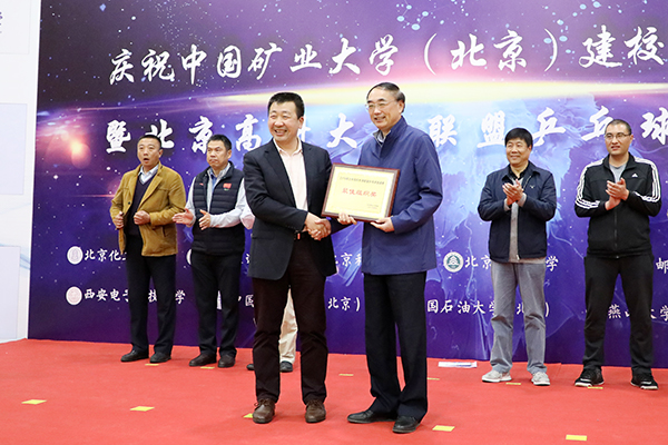 北京高科大学联盟理事长王亚杰、中国矿业大学(北京)校长葛世荣、中国矿业大学(北京)党委副书记王忠强、北京高科大学联盟秘书长刘志晗分别为体育道德风尚奖获奖高校、最佳组织奖获奖高校、男子单打前八名获奖选手、女子单打前八名获奖选手、男子双打前八名获奖选手、女子双打前八名获奖选手颁奖。