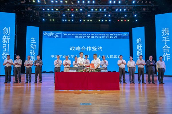 本网讯 9月2日,神木市政府在神木职业技术学院举行“煤炭安全高效开采与清洁利用高峰论坛暨政产学研合作签约仪式”,中国矿业大学(北京)应邀参加。我校副校长赵峰华代表学校与神木市签订了校地战略合作协议,机电与信息工程学院与神木恒源集团海湾煤矿签订了“智慧矿山及薄煤层智能化开采”院企合作协议。