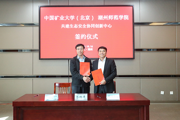 本网讯 10月16日,中国矿业大学(北京)与湖州师范学院共建生态安全协同创新中心签约仪式在湖州师范学院举行。我校副校长赵峰华与湖州师范学院校长张立钦分别代表双方签署了合作协议,并与湖州师范学院党委书记金佩华、校长张立钦举行了会谈。双方相关职能处室、学院负责人出席签约仪式。湖州师范学院副校长叶金云主持签约仪式。