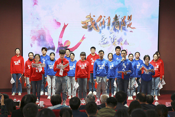 新时代大学生肩负新使命,百十矿大新征程谱写新篇章。在校学生代表进行了合唱献词《我们都是追梦人》。