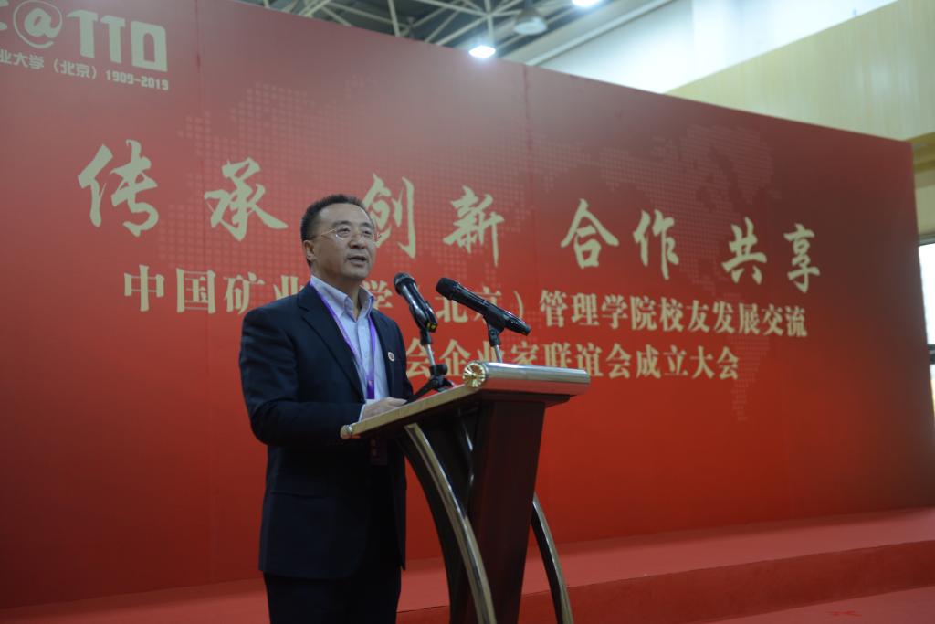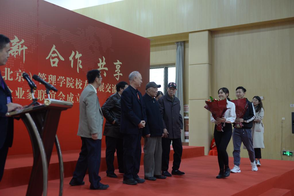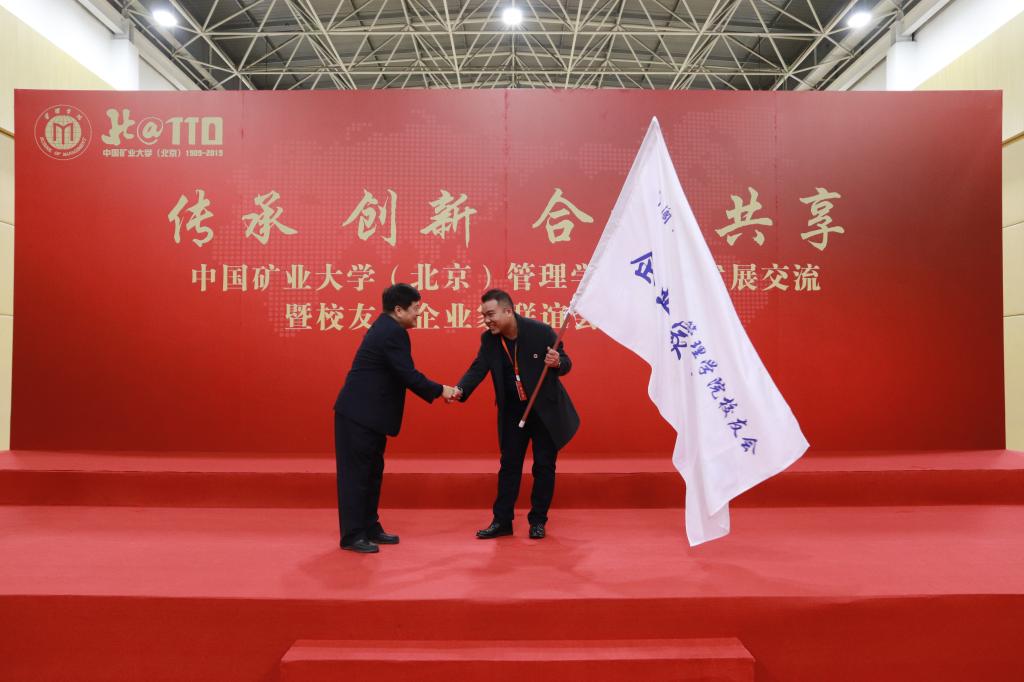 校友会会长安景文向企业家联谊会授旗,校友会王立杰会长向企业家联谊会提出要求,校友企业家代表张爱静、宗建军、孙金涛表示要将广大校友企业家凝聚在一起,加强校企合作、校友合作,促进资源共享,实现发展共赢。
