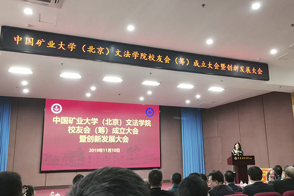 本网讯 作为庆祝建校110周年系列活动之一,2019年11月10日下午2:30,中国矿业大学(北京)文法学院校友会(筹)成立大会暨创新发展大会在交流中心学术报告厅隆重举行。校党委副书记王忠强出席本次大会并致辞,党委宣传部负责人、兄弟院校领导、合作企业嘉宾、学院历届班子成员、返校校友、全体教职工及学生代表参加大会。