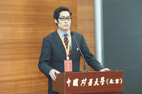 博德公司北京代表处副总经理李荣杰代表本科生校友发言。他表示作为地质工程1999级的一员,也是学校恢复本科办学后原资源开发工程系招收的第一届学生,感到很自豪,所在班级班风学风优良,曾获得北京市先进班集体等多个省部级荣誉称号。毕业时全班26人,20人读研深造。他回忆起当年同窗情谊,感谢恩师教育之情,感叹母校变化之大,祝福百十矿大、祝福学院发展越来越好。