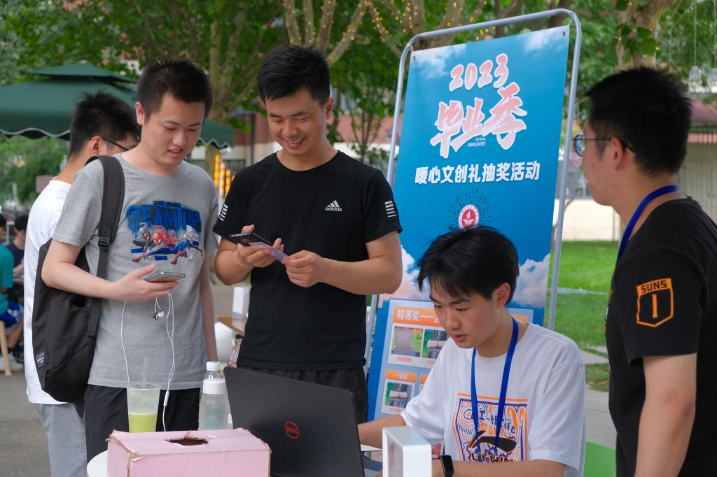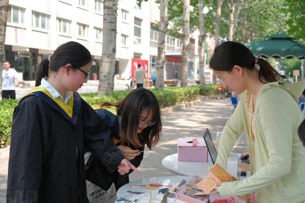 一件文创,一份印记。毕业生们在文创前驻足欣赏,并踊跃参与“校园印记——暖心文创礼”活动,领取校园文创与毕业祝福。小小的礼物带来幸运,在未来的道路上相伴相随,与毕业生们一起奔赴梦想。