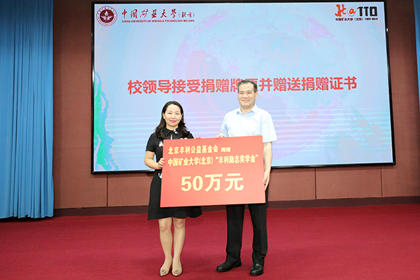 中国矿业大学(北京)“丰利励志奖学金”由北京丰利公益基金会出资设立,基金会拟于2019年到2024年向我校捐赠资金共计50万元,用于资助我校品学兼优的家庭经济困难学生,帮助他们顺利完成学业。
