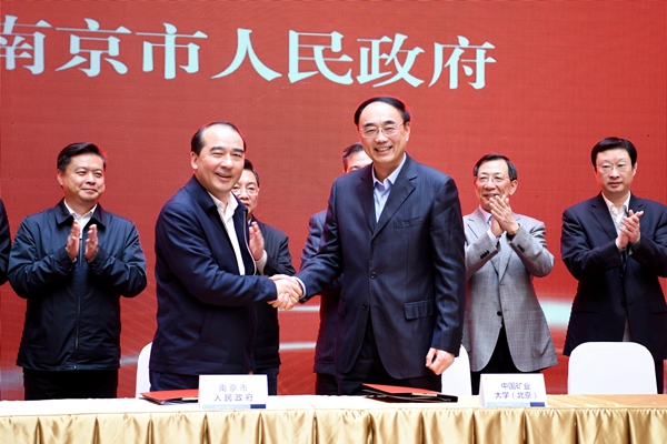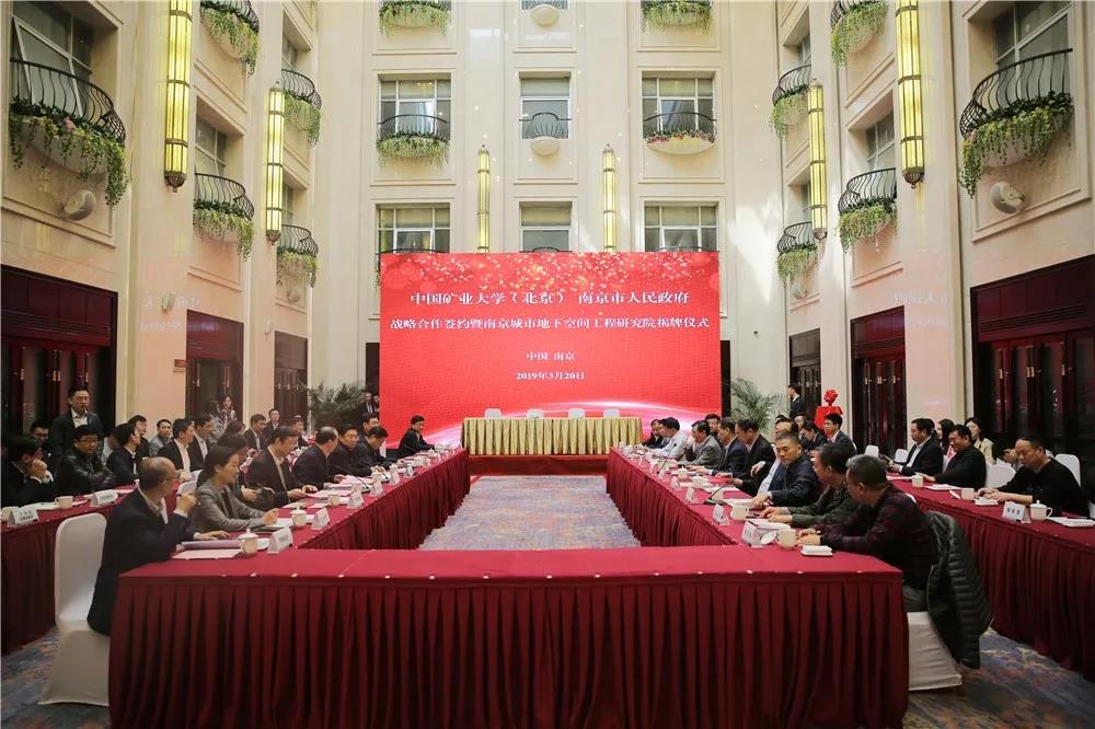 葛世荣校长代表我校与南京市人民政府签署战略合作协议。根据合作协议,双方将在加强政产学研用协同创新、重大产业创新项目、人才培养与干部交流、创业就业等方面开展合作,重点发展城市地下空间协同开发与利用、绿色建造技术、高端智能装备、前沿新材料等战略性新兴产业。协议的签订不仅有利于加快南京市推动科技创新与产业发展,更有利于我校充分发挥学科、人才、科研等方面的优势,推动创新成果产业化,增强学校科研综合实力,持续深化服务社会功能。